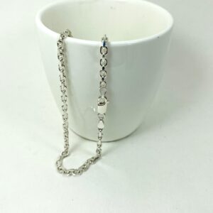 สร้อยคอเงินแท้ 925 ลายโซ่ตัดขอบ ชุบทองคำขาว ตะขอก้ามปู