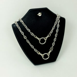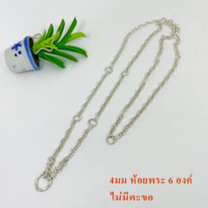 สร้อยคอเงิน ห้อยพระ 8 องค์ รุ่นไม่มีตะขอ ลายเลขแปดสลับ ห่วงหน้าใหญ่เปิดได้