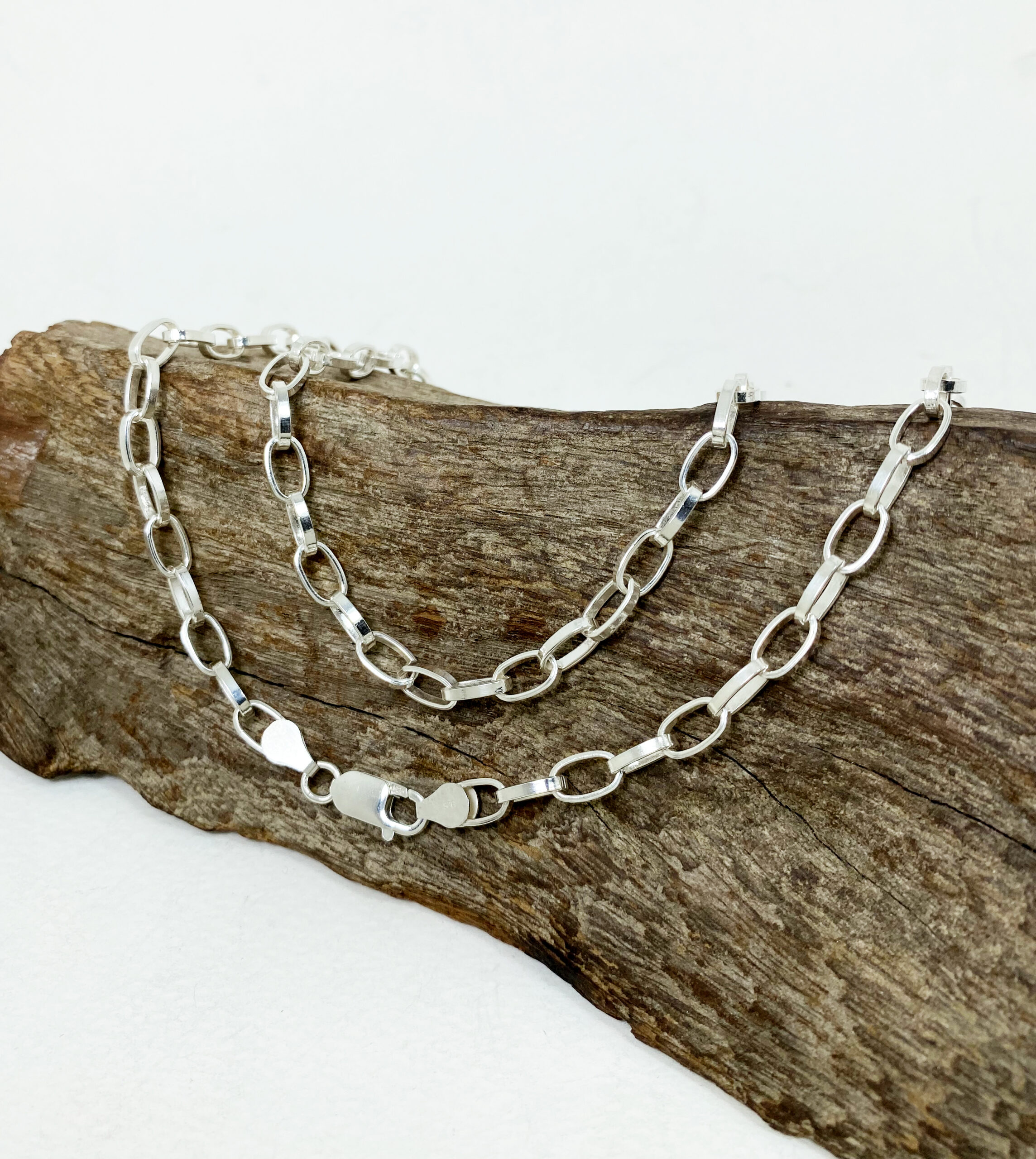 สร้อยคอเงิน ลายผ่าหวายรีลวดแบน