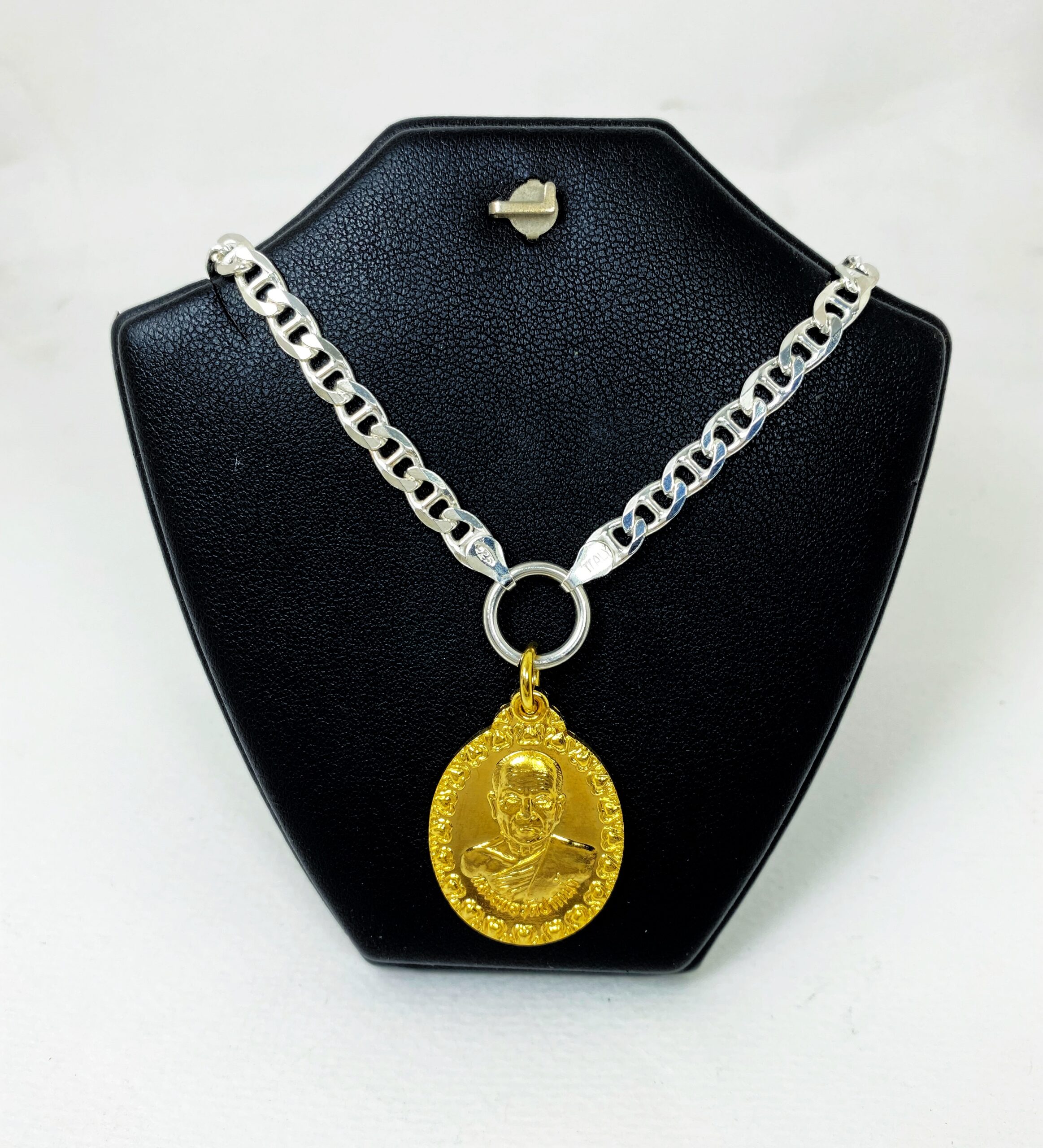 สร้อยคอห้อยพระเงินอีตาลีแท้ นำเข้าจากอีตาลี ลายมารีน ห้อยพระ 1 องค์ ดีไซน์ห่วงหน้า