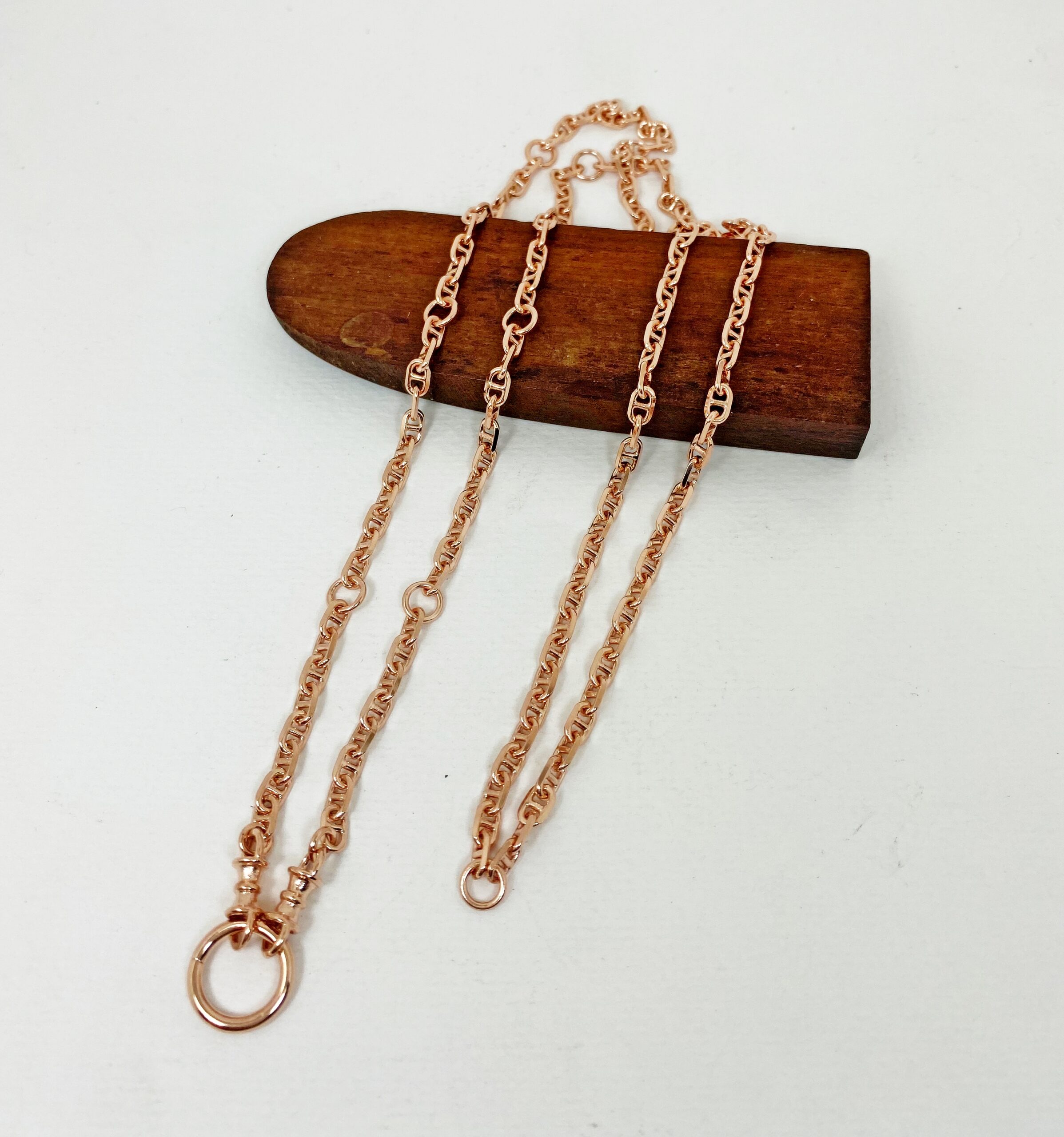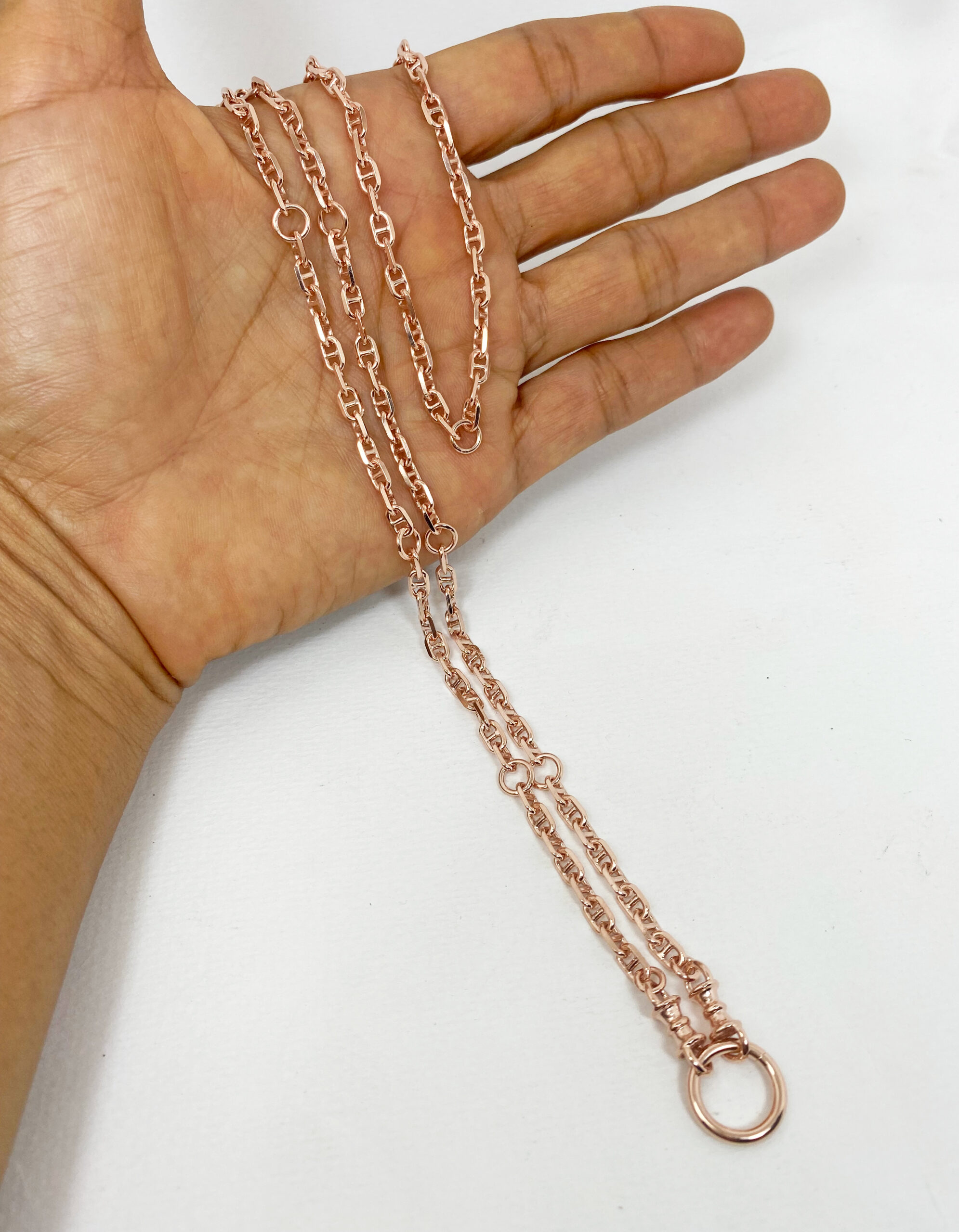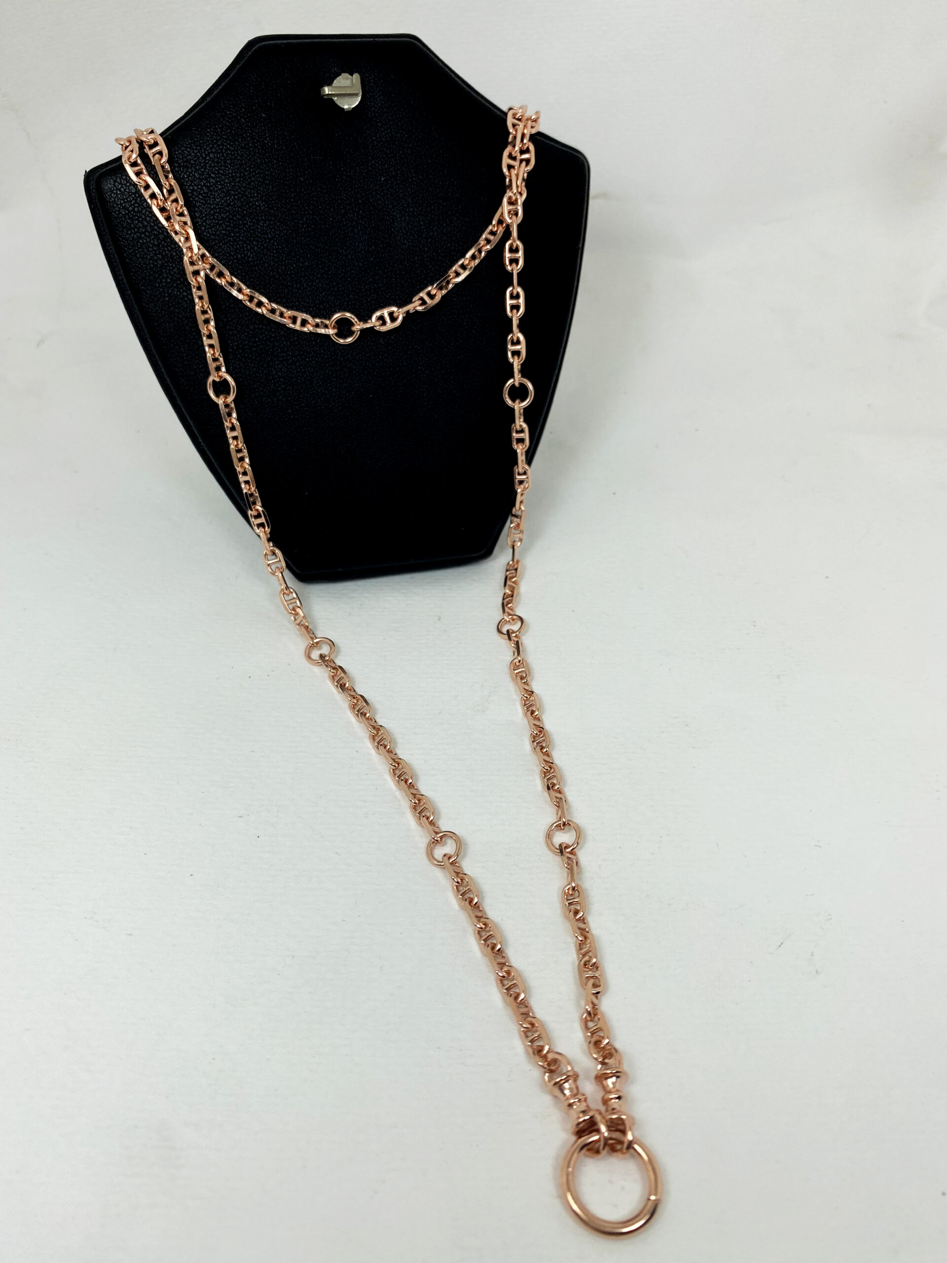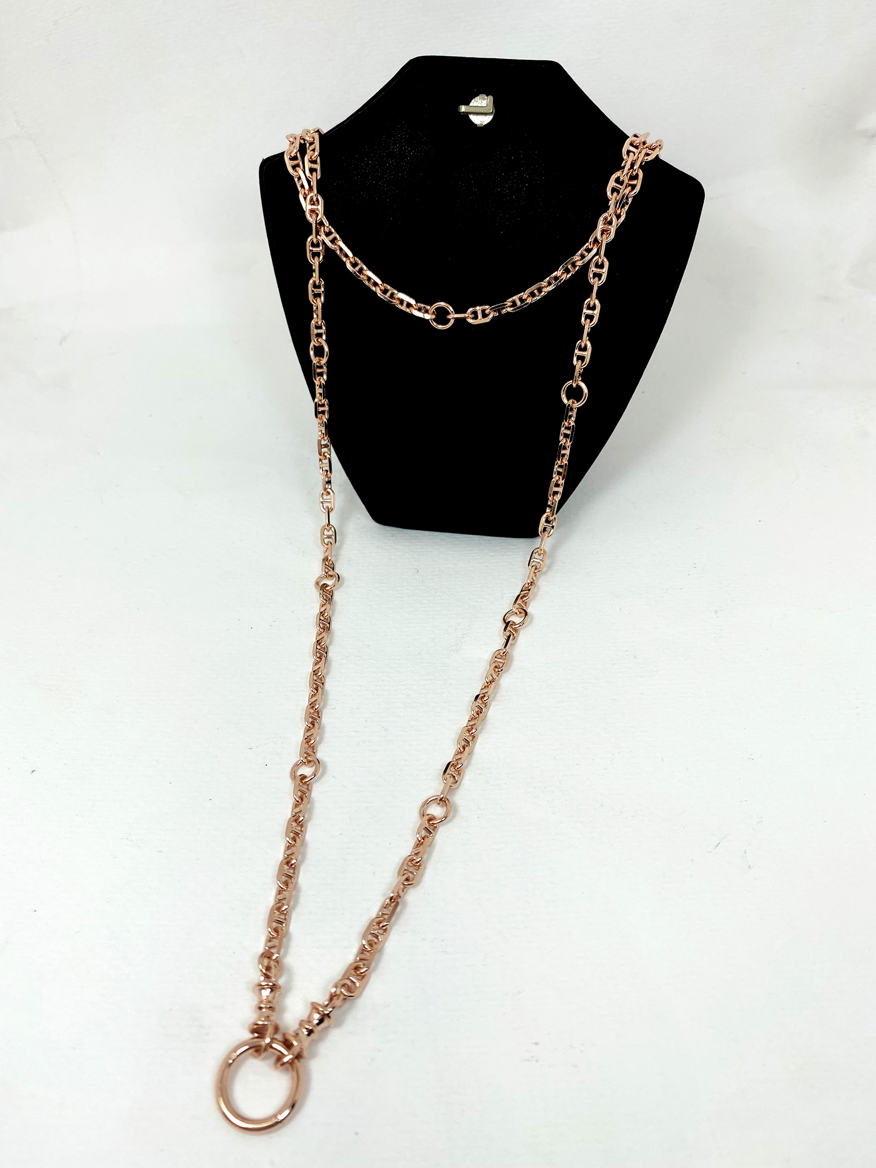 สร้อยคอห้อยพระ 8 องค์ สีพิงค์โกลด์ ลายเลขแปดสลับ รุ่นไม่มีตะขอ ห่วงหน้าใหญ่เปิดได้