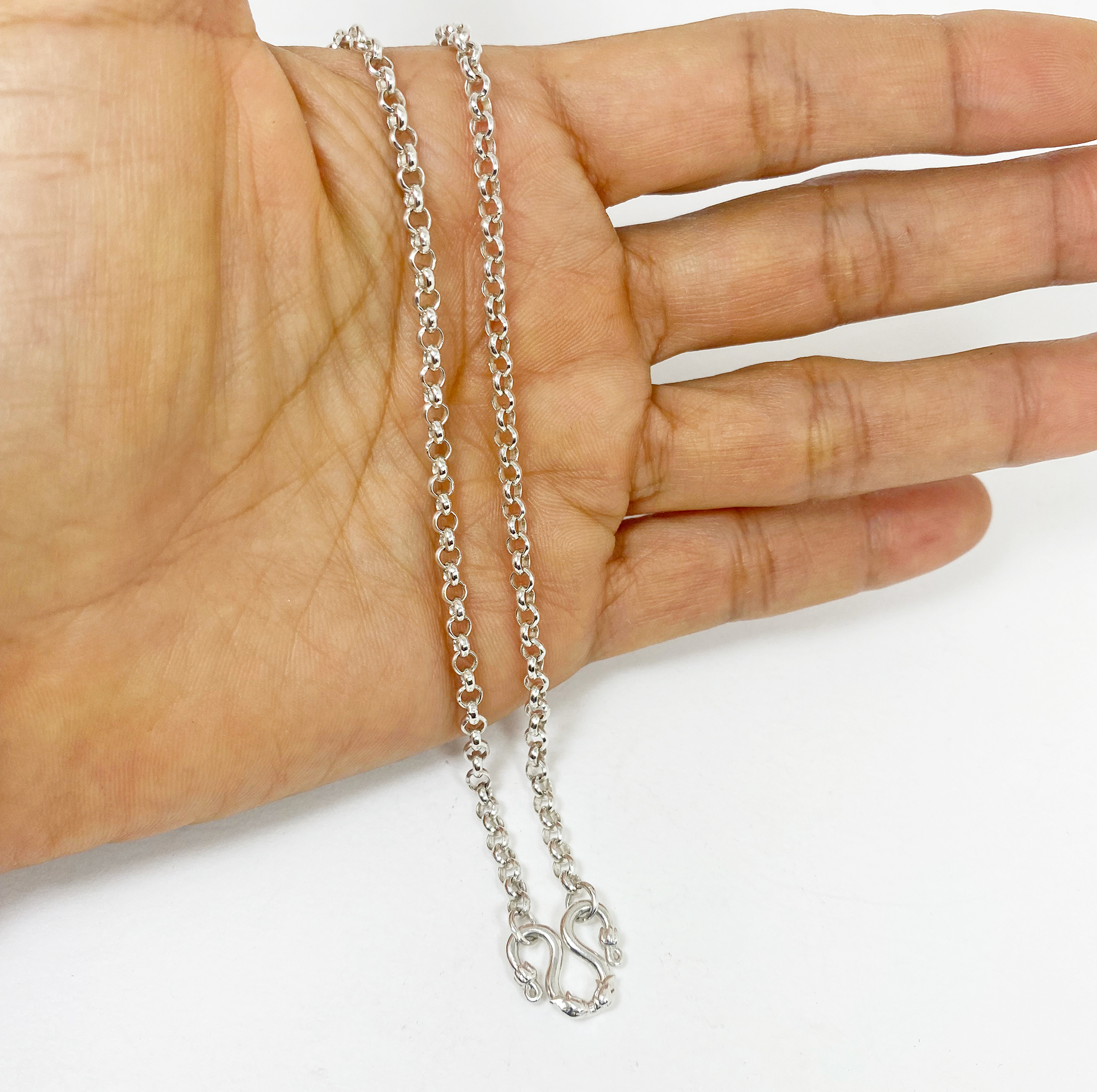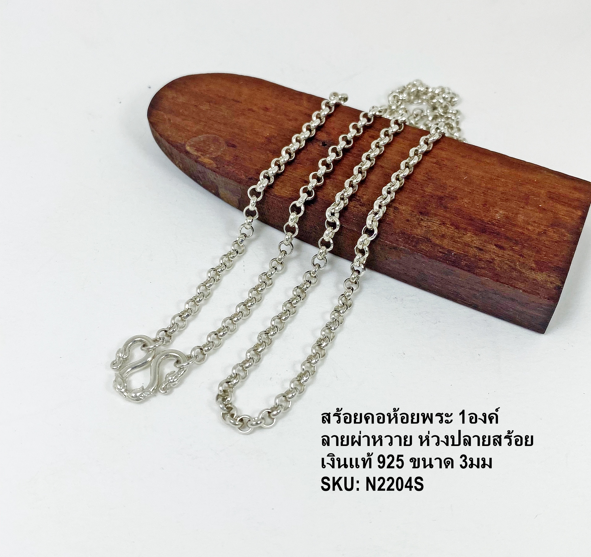 สร้อยคอเส้นเล็ก ลายผ่าหวาย ตะขอM ใส่ได้ทั้งแฟชั่นและห้อยพระ เงินแท้ 925 สไตล์โมเดิร์น