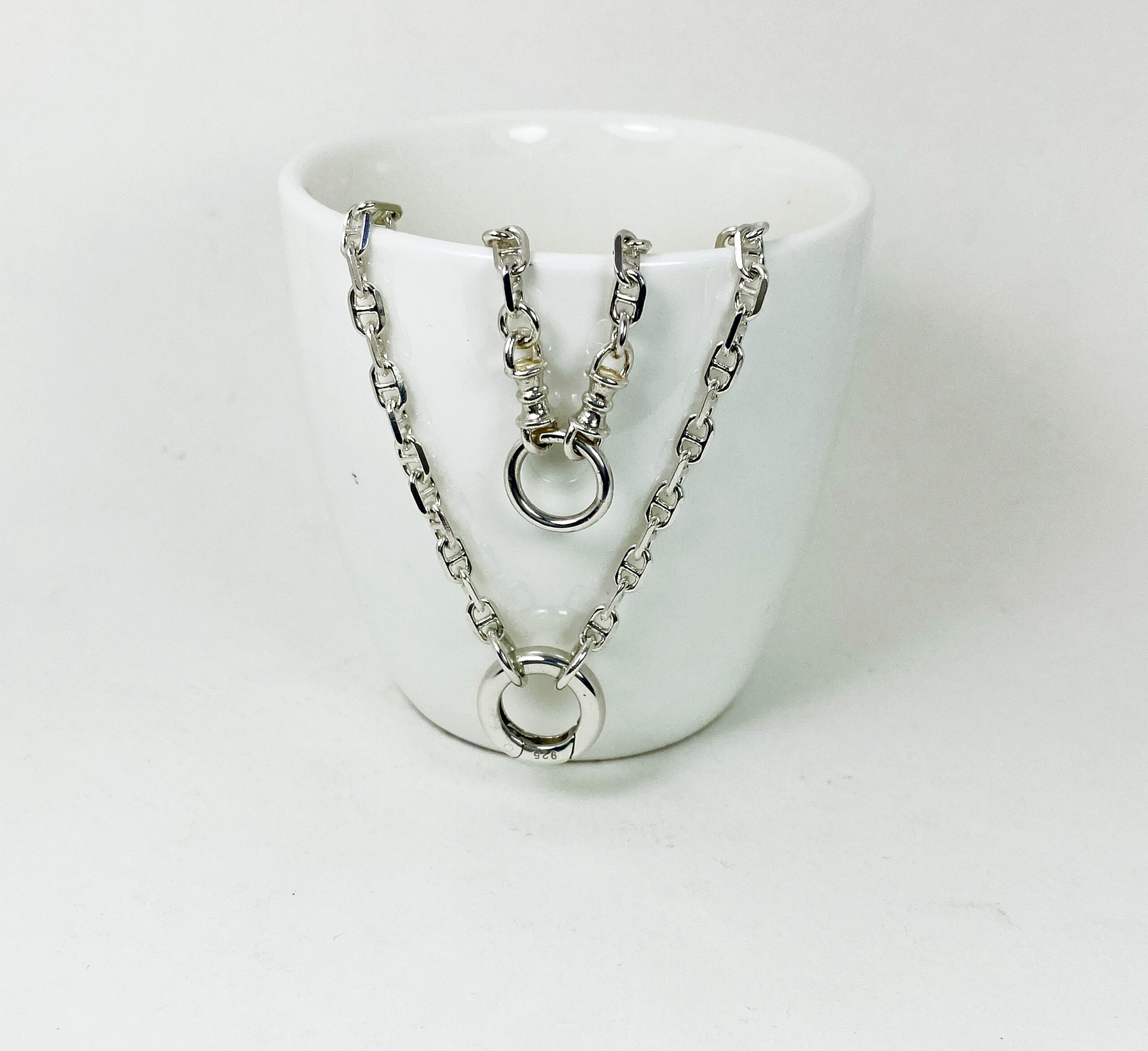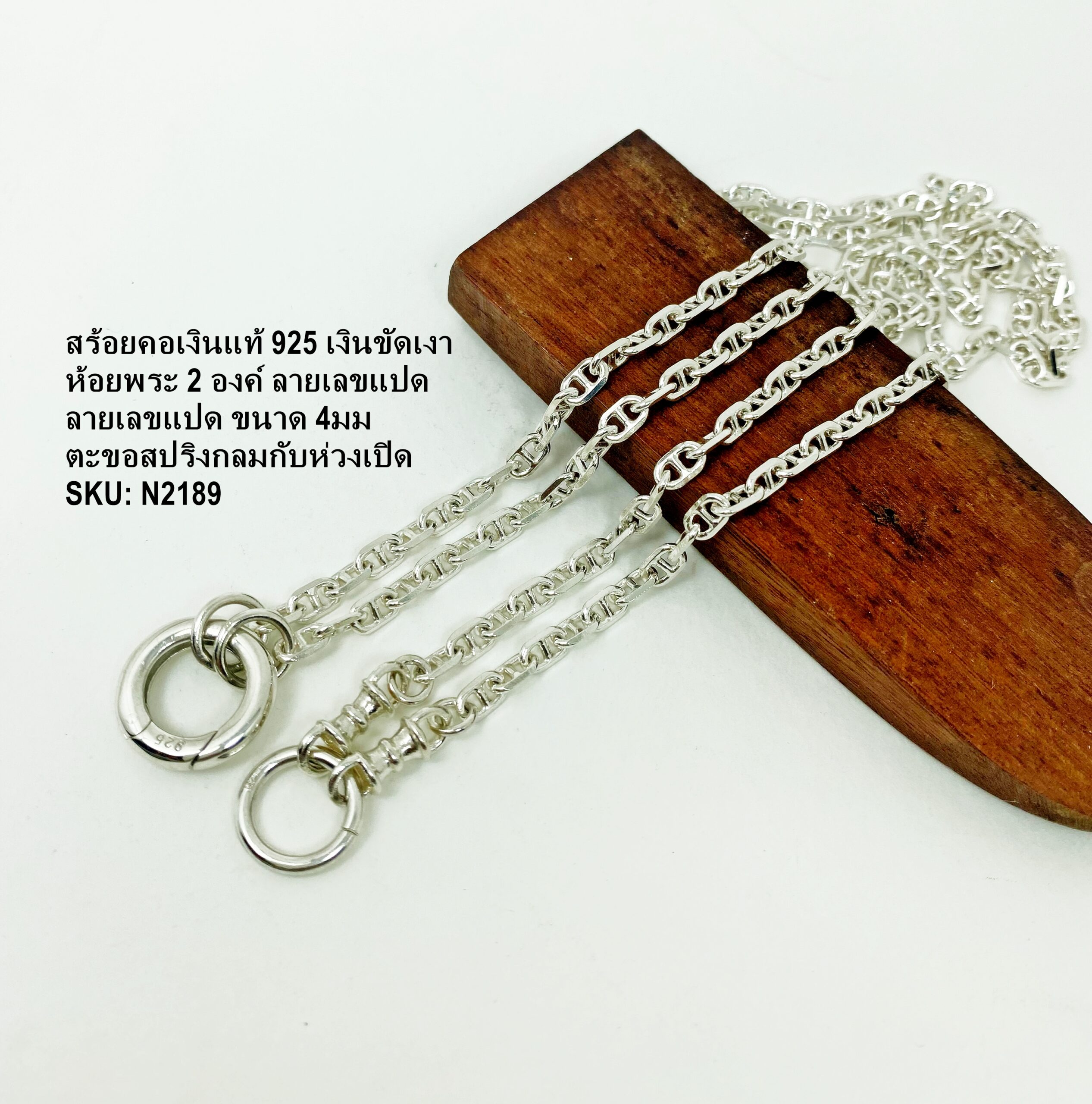 สร้อยคอเงินแท้ห้อยพระ 2 องค์ ลายเลขแปด สามารถใส่สลับห้อยหน้าหลังได้ 2 สไตล์ มีตะขอสปริงกลมอิตาลีให้เปลี่ยนองค์พระได้สะดวก