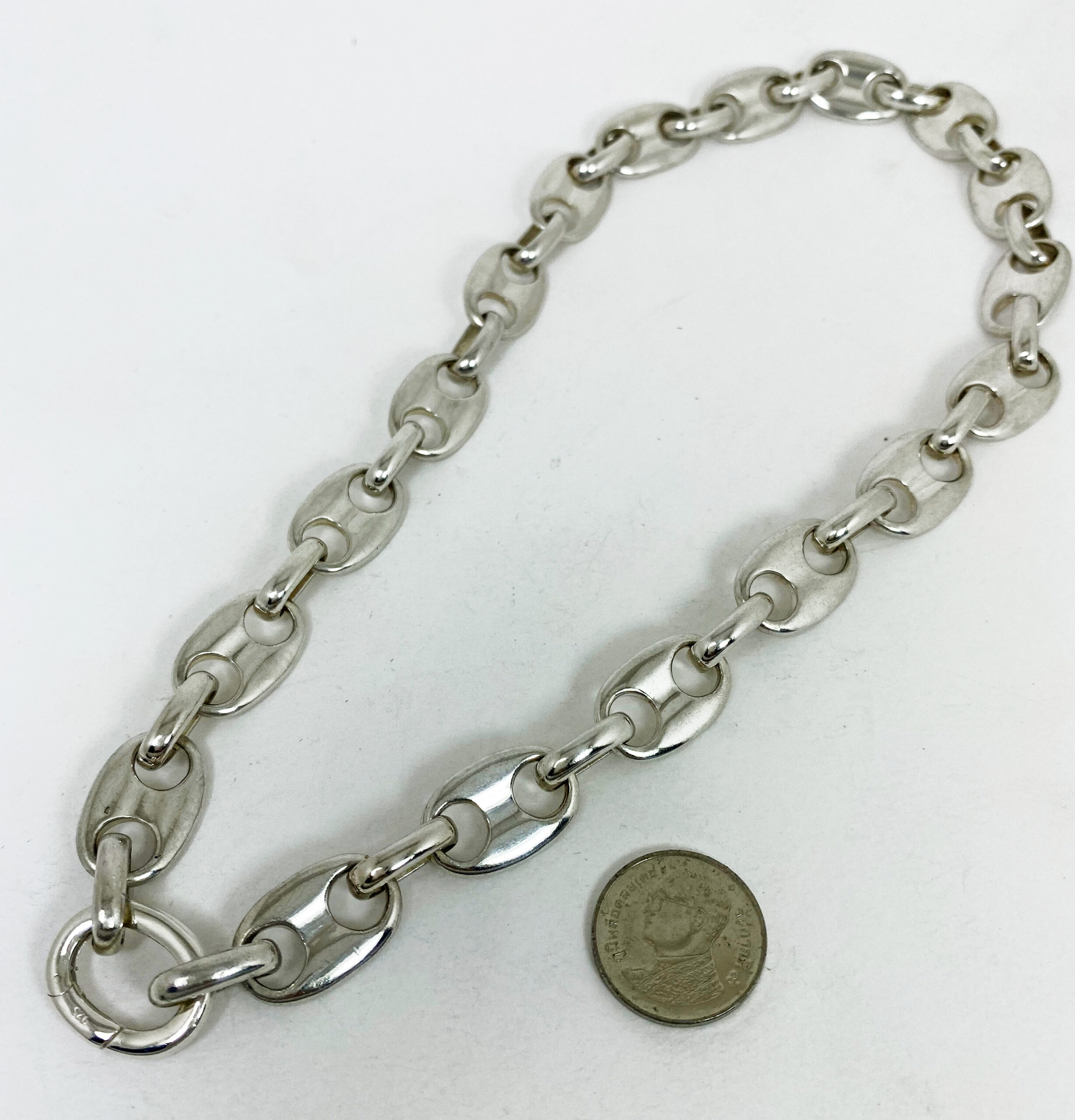 สร้อยคอเงินแท้ 925 ลายเลขแปดแบน ตะขอสปริงอิตาลี ห้อยพระ 1 องค์ สไตล์โมเดิร์น