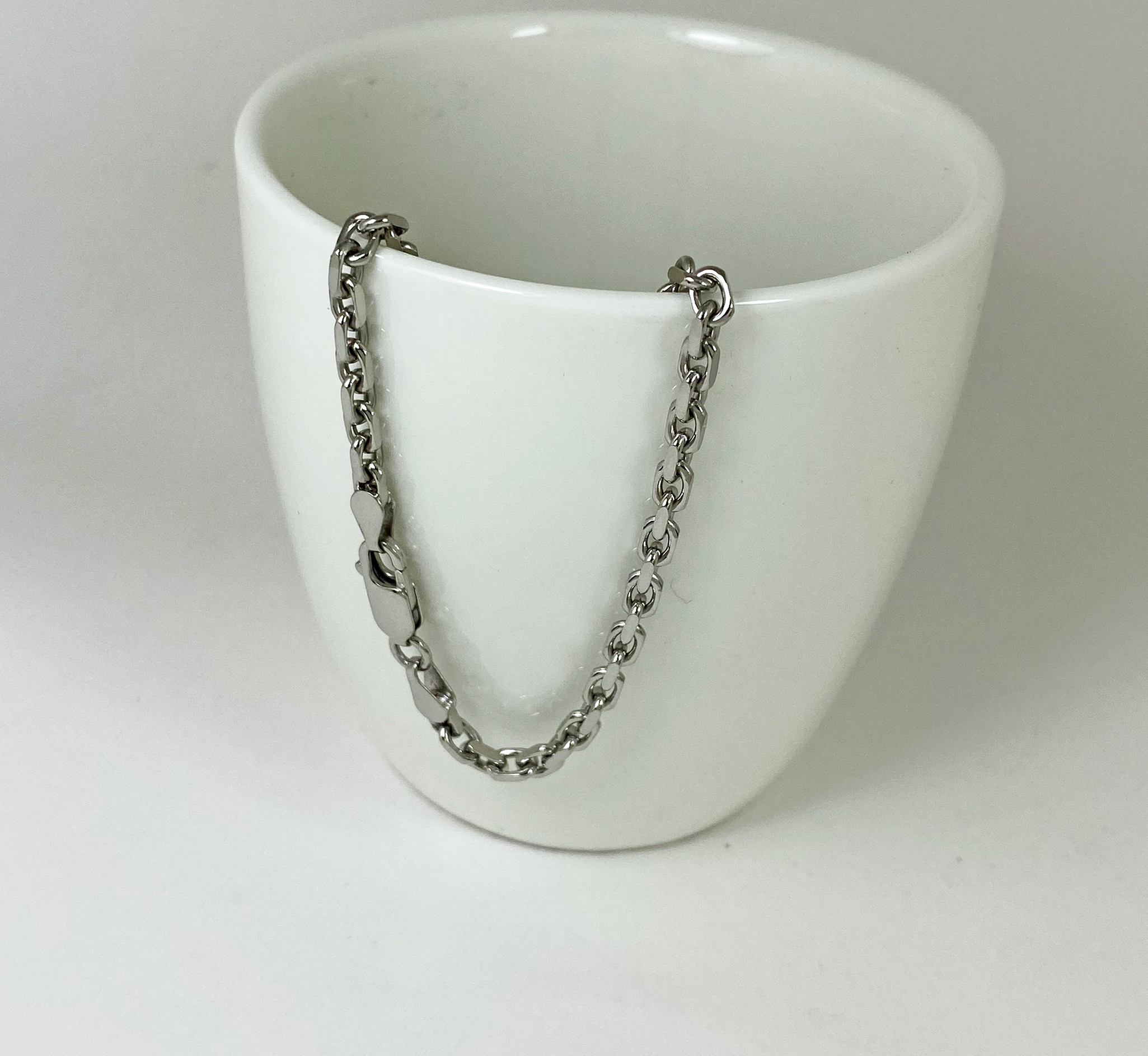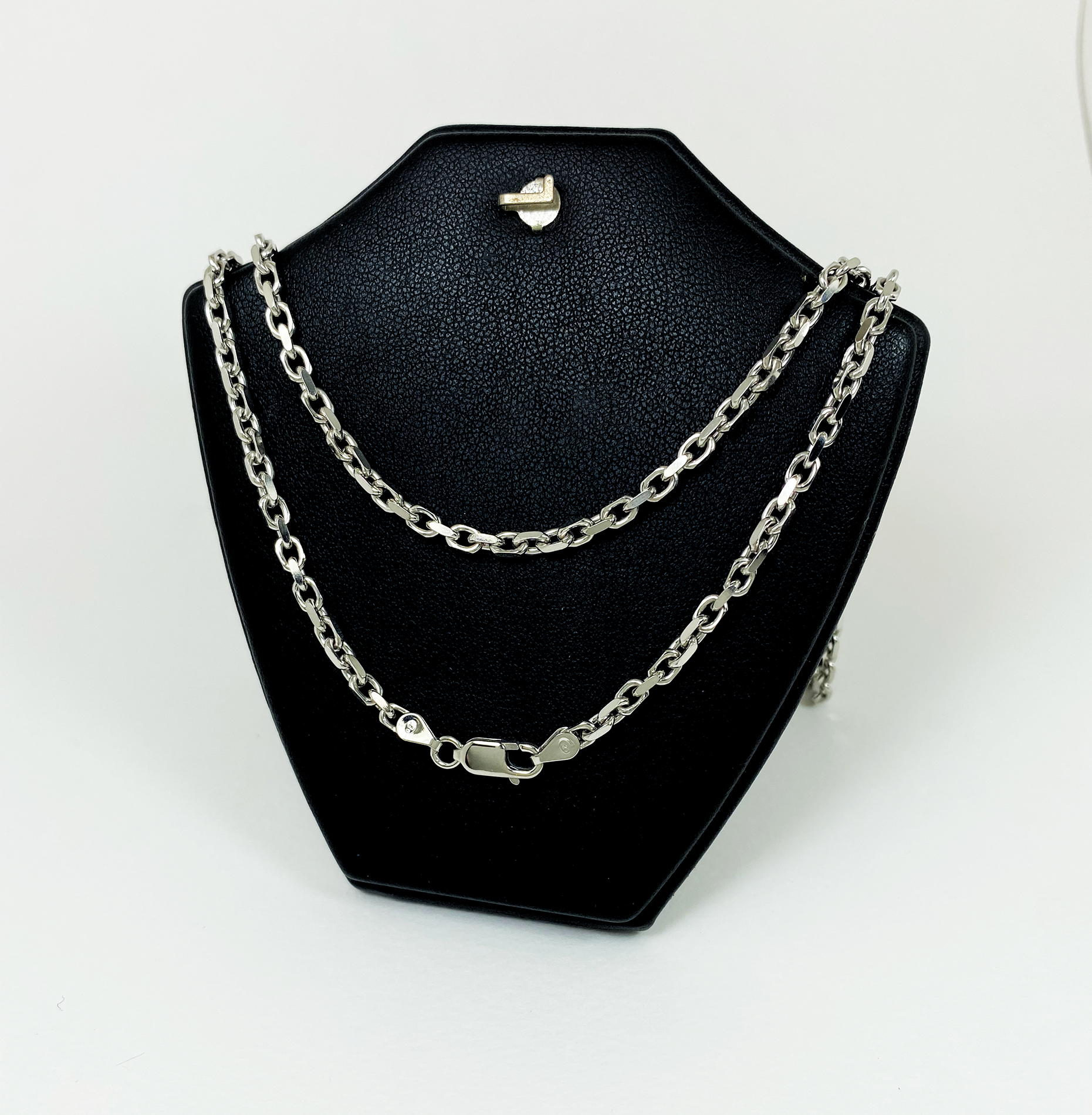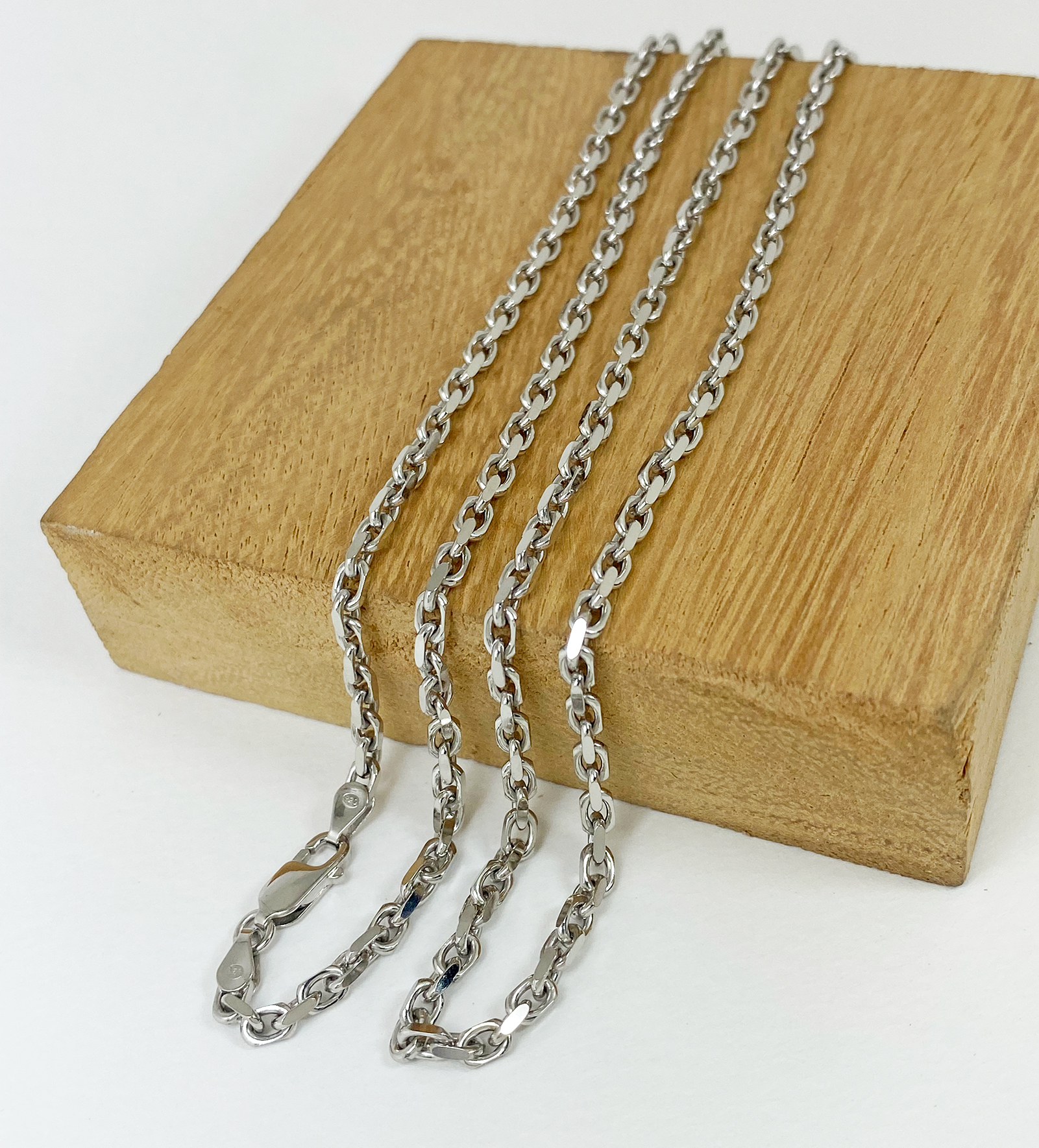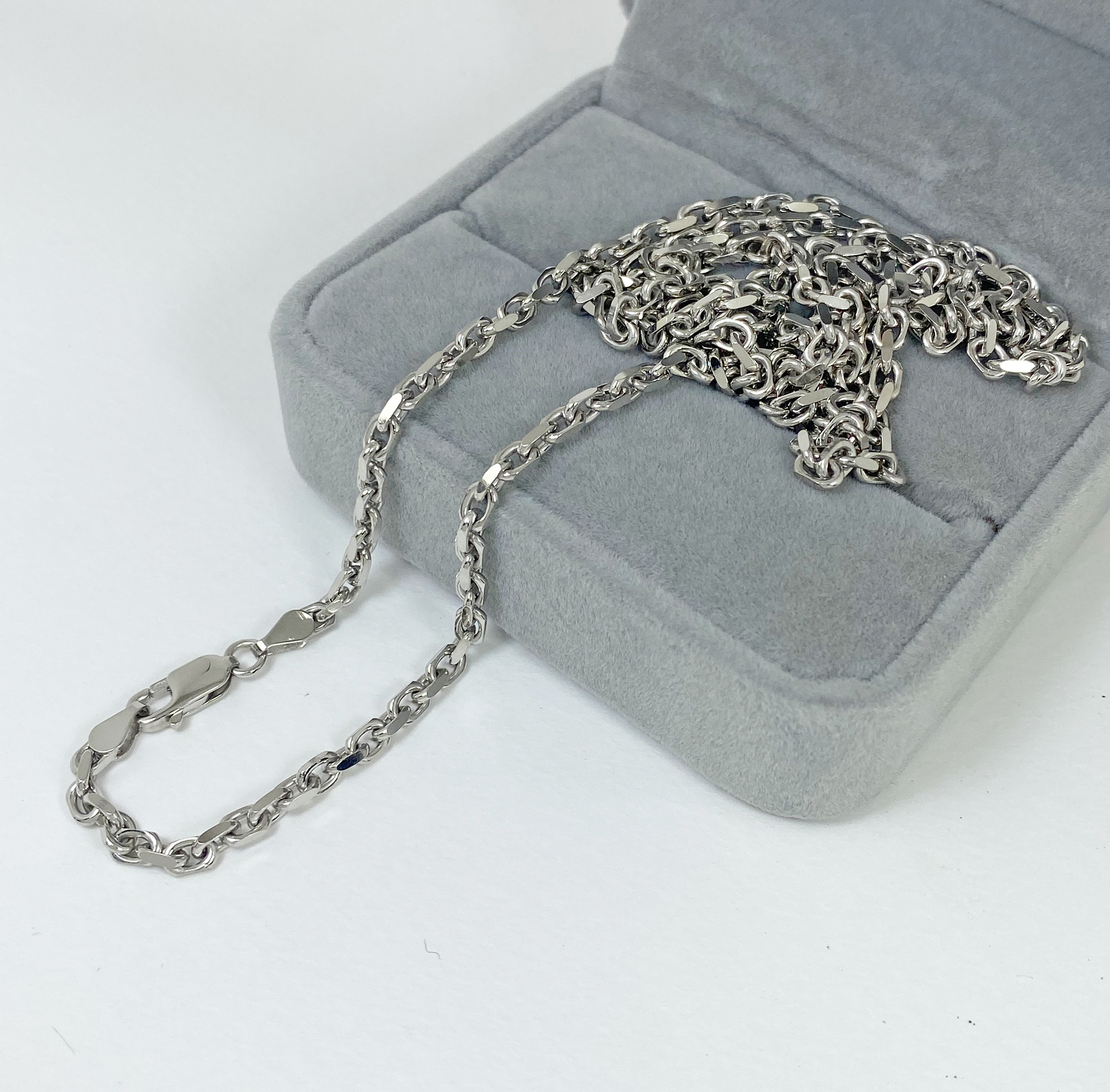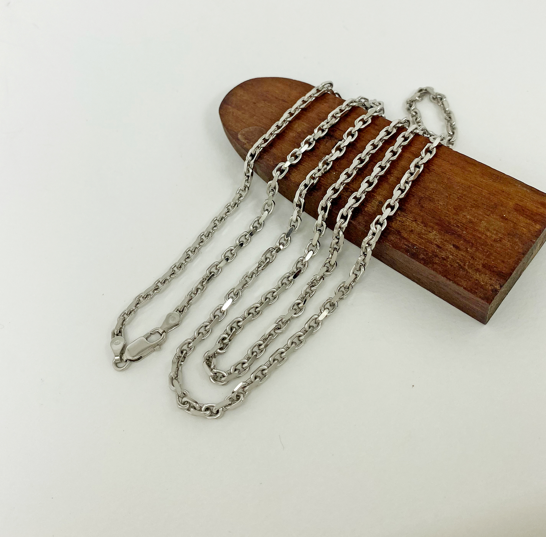 สร้อยคอเงินแท้ 925 ลายโซ่ตัดขอบ ชุบทองคำขาว ตะขอก้ามปู