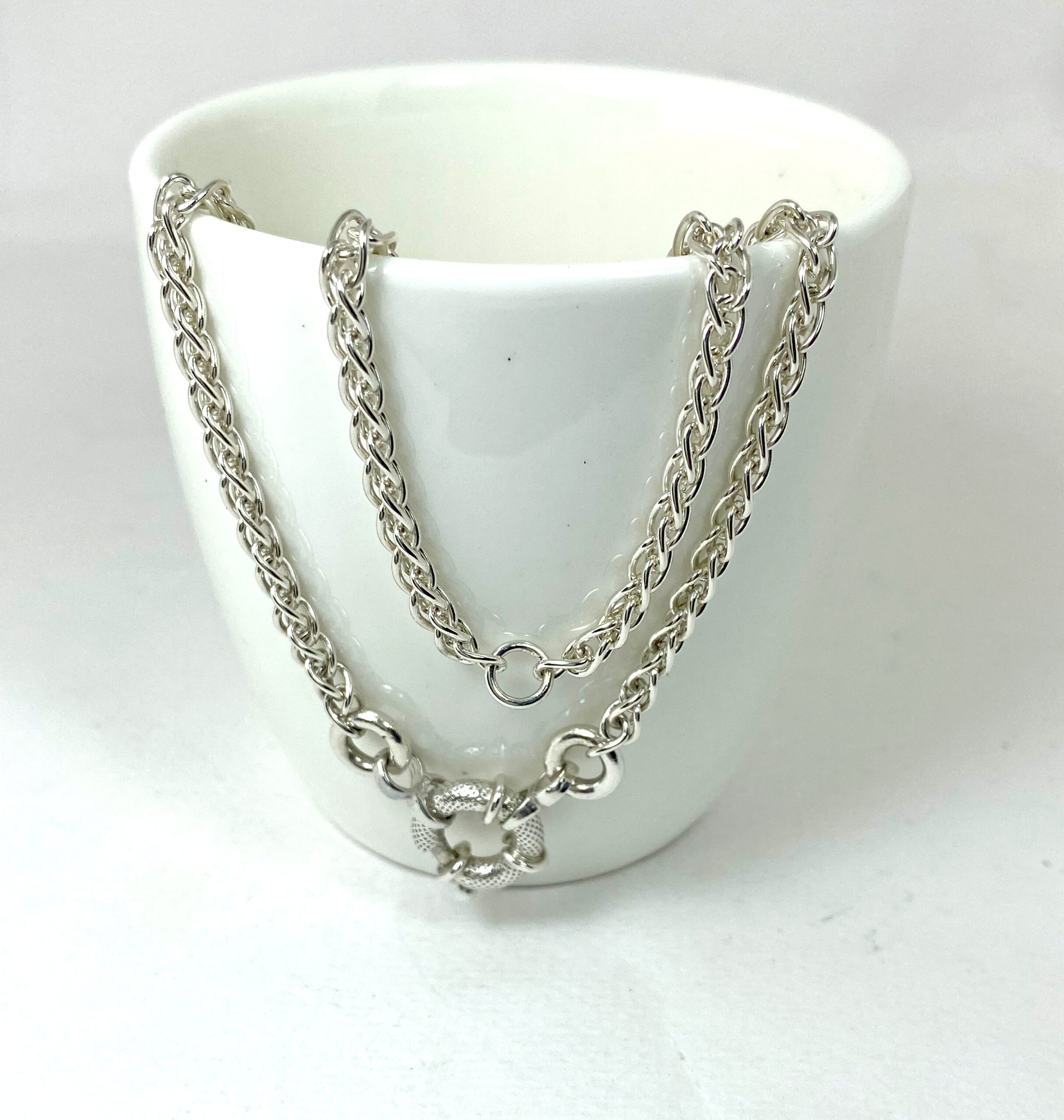 - ตะขอสปริงกลมมีลวดลาย นำเข้าจากอีตาลี สามารถห้อยพระในตะขอได้ค่ะ