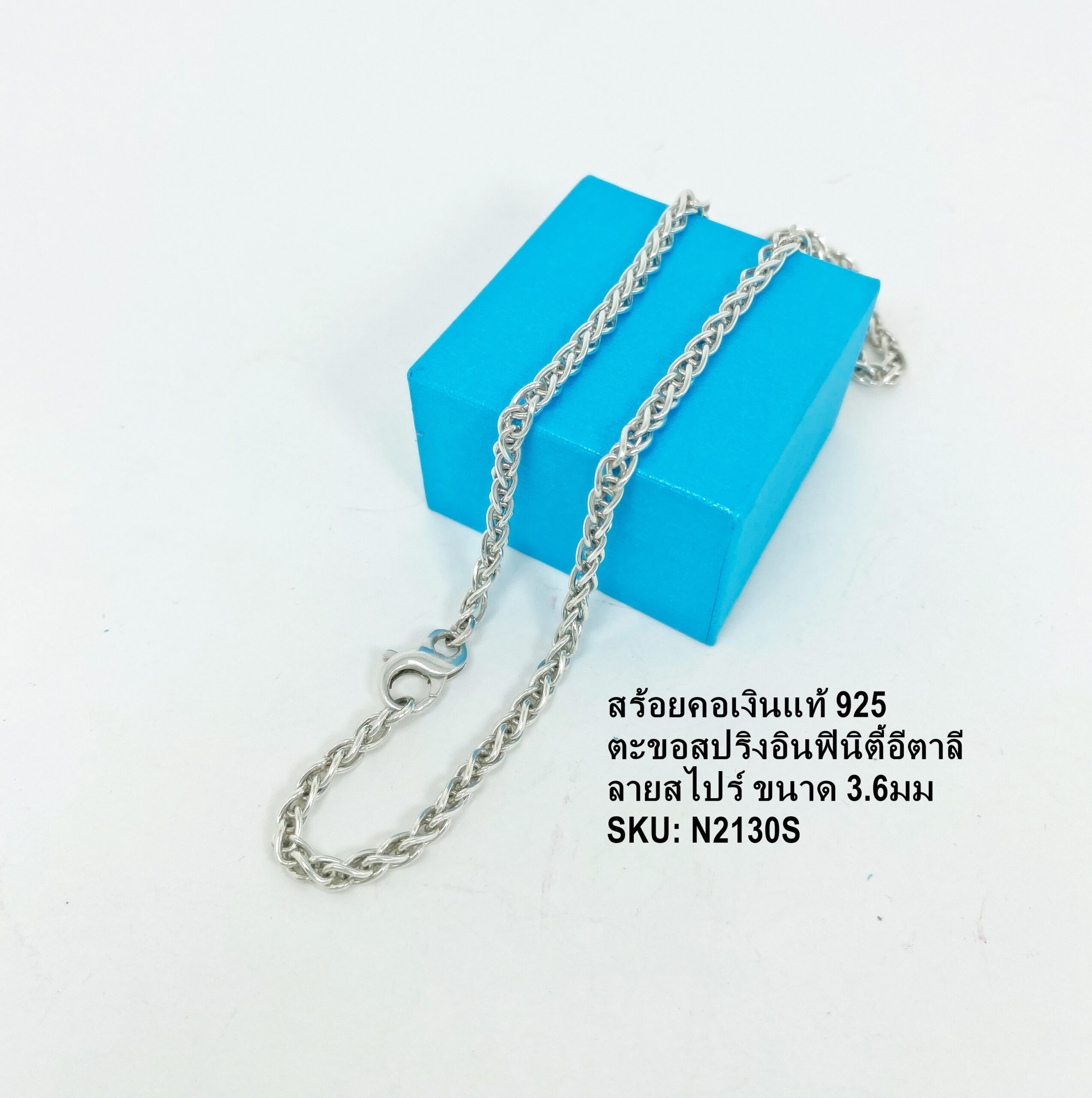 สร้อยคอเงิน 925 ลายสไปร์ ตะขอสปริงอินฟินิตี้อีตาลี ใส่ได้ทั้งห้อยพระและแฟช้่น
