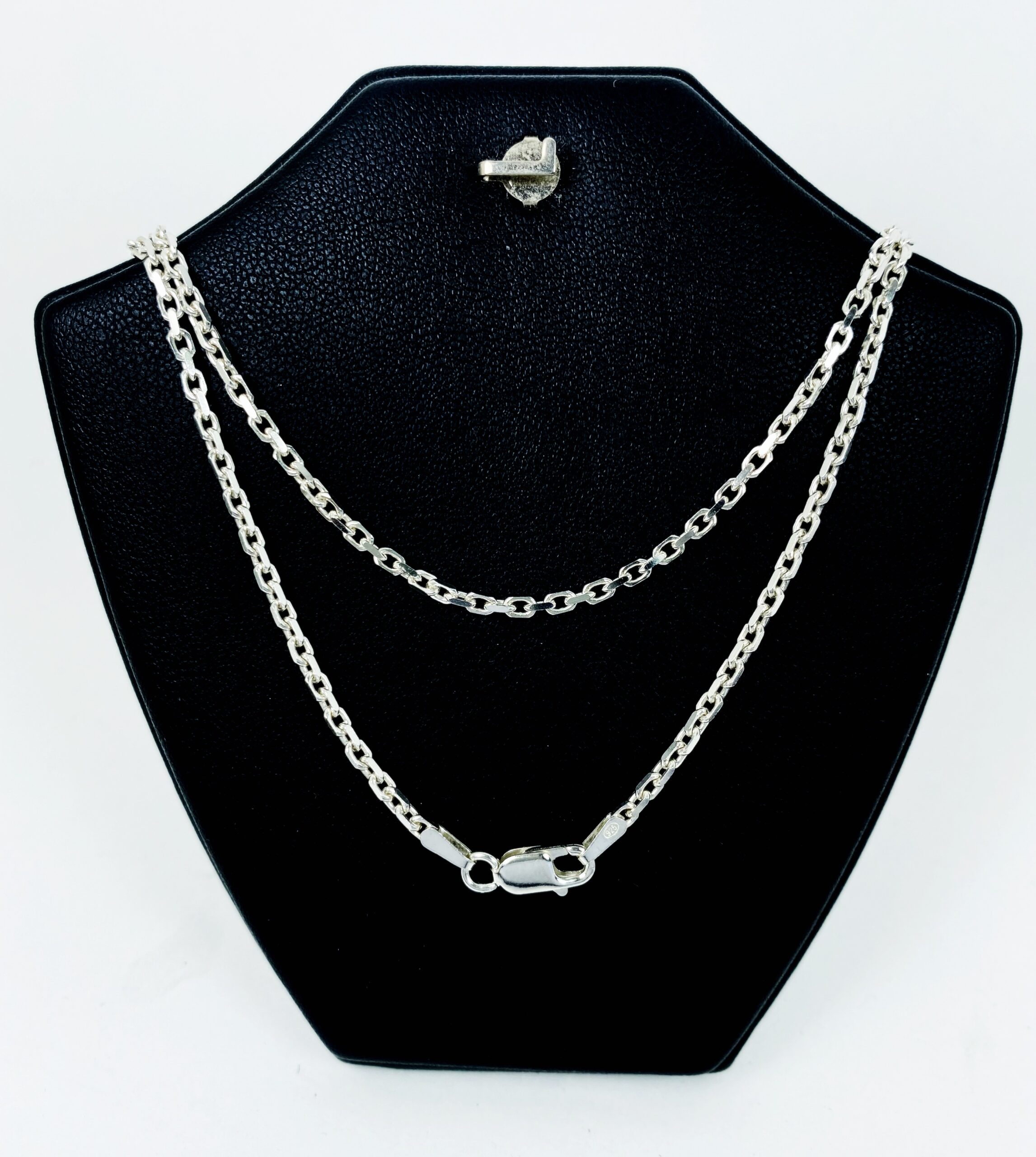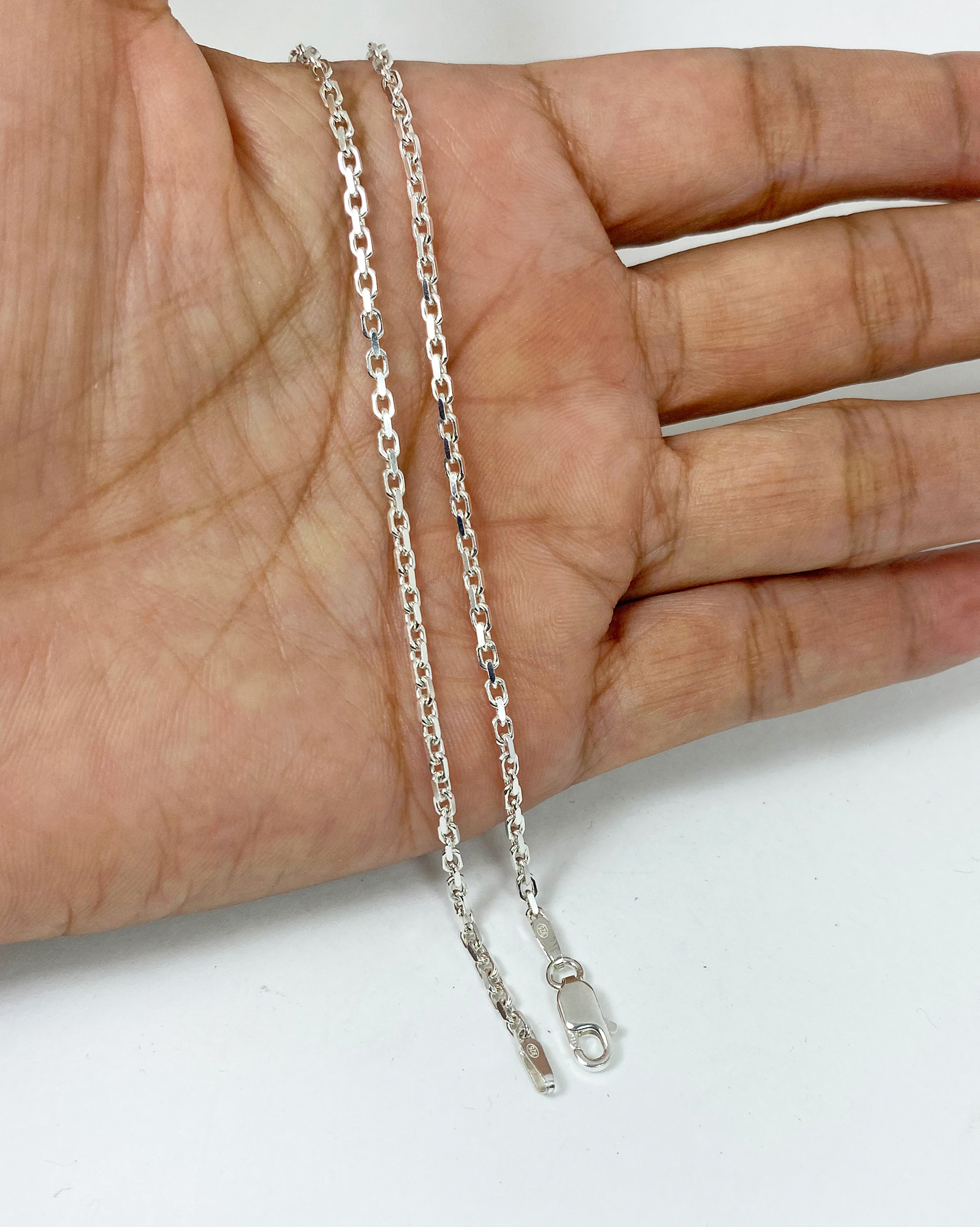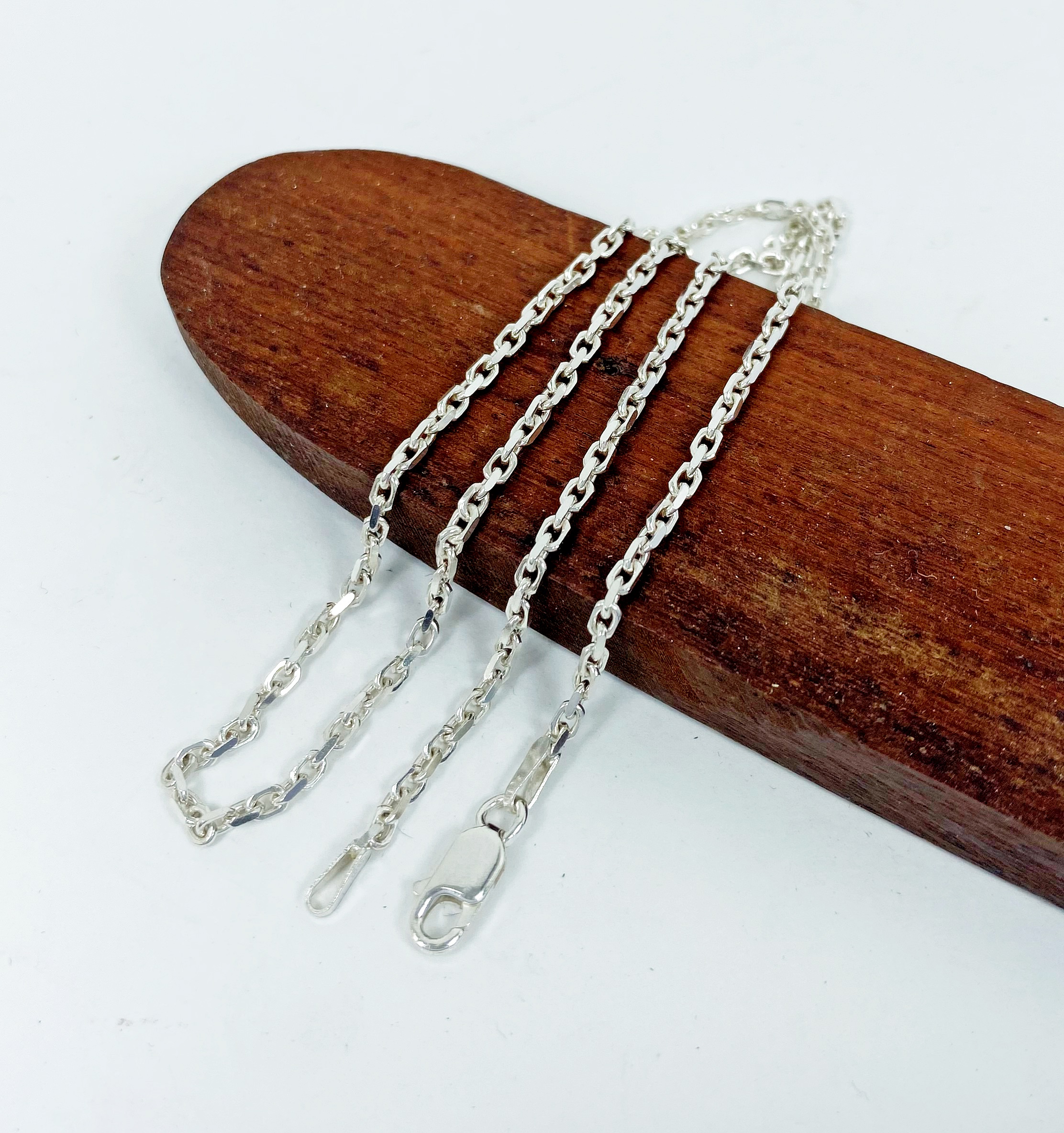 สร้อยคอเส้นเล็กเงินแท้ 925 ลายโซ่เหลี่ยมตัดขอบ ห้อยพระ 1 องค์ ตะขอสปริงก้ามปู