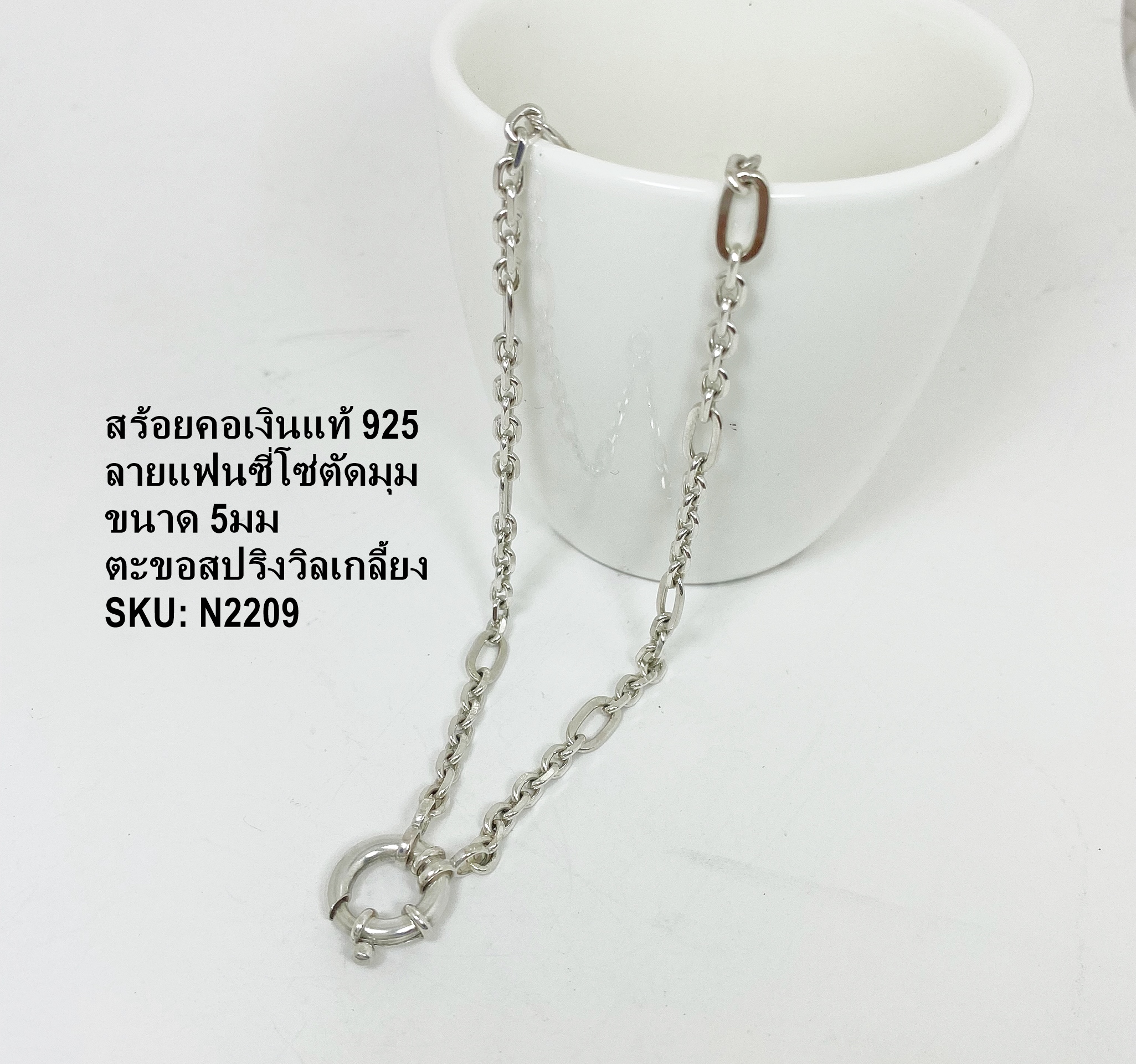 สร้อยคอ ลายแฟนซีโซ่ตัดมุม ตะขอสปริงวิลเกลี้ยง ใส่ได้ทั้งแฟชั่นและห้อยพระ 1 องค์ เงินแท้ 925 สไตล์โมเดิร์น