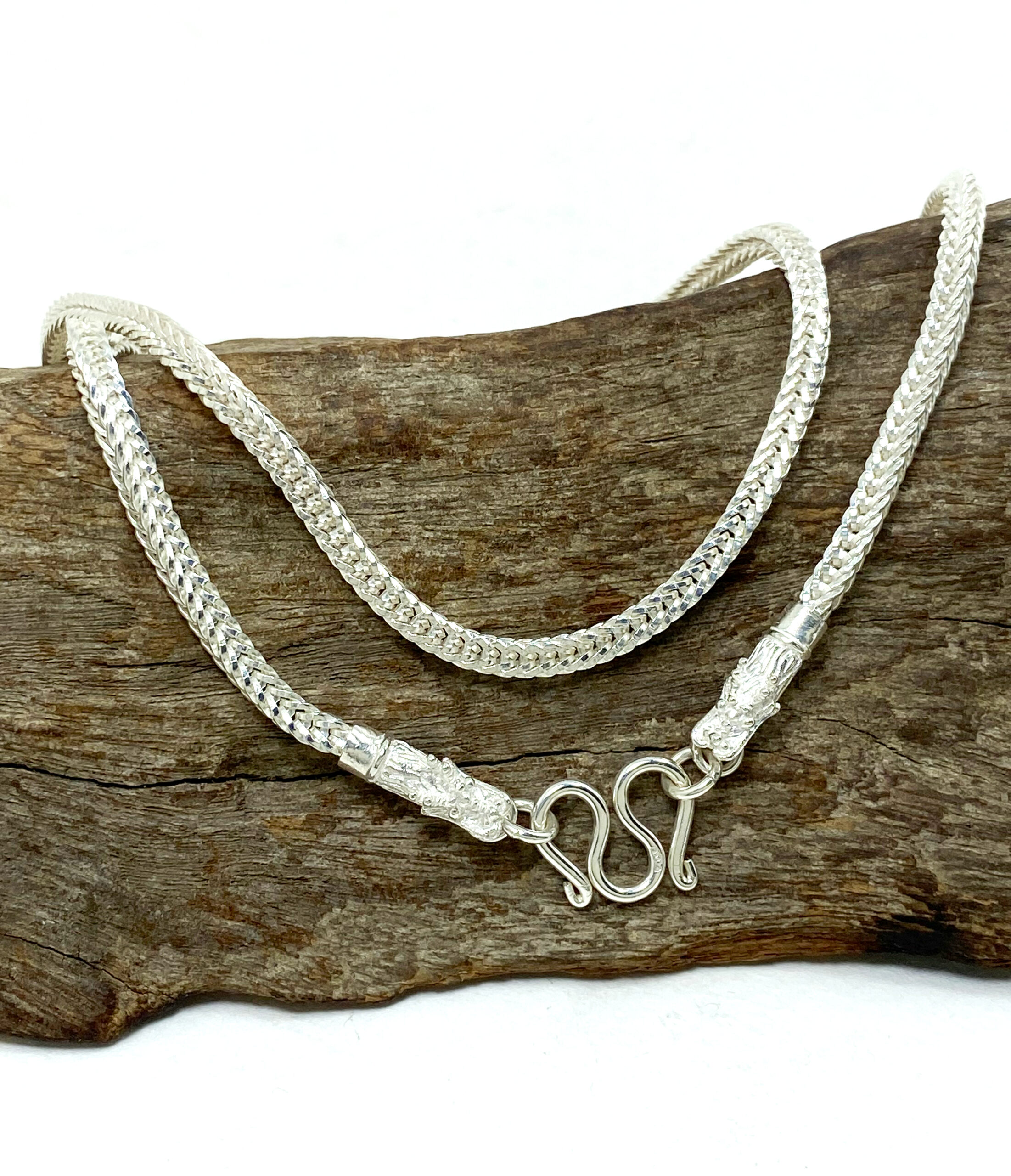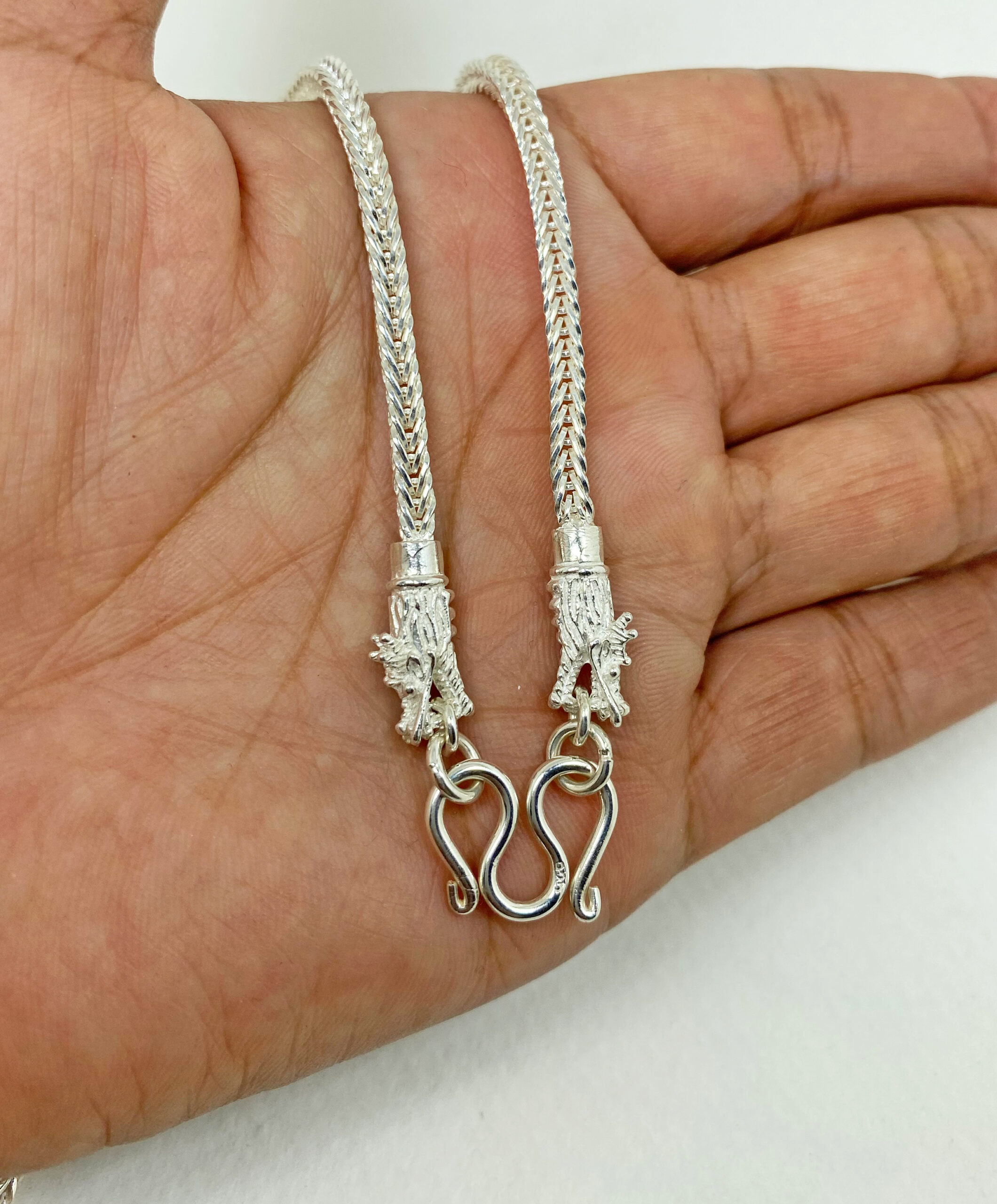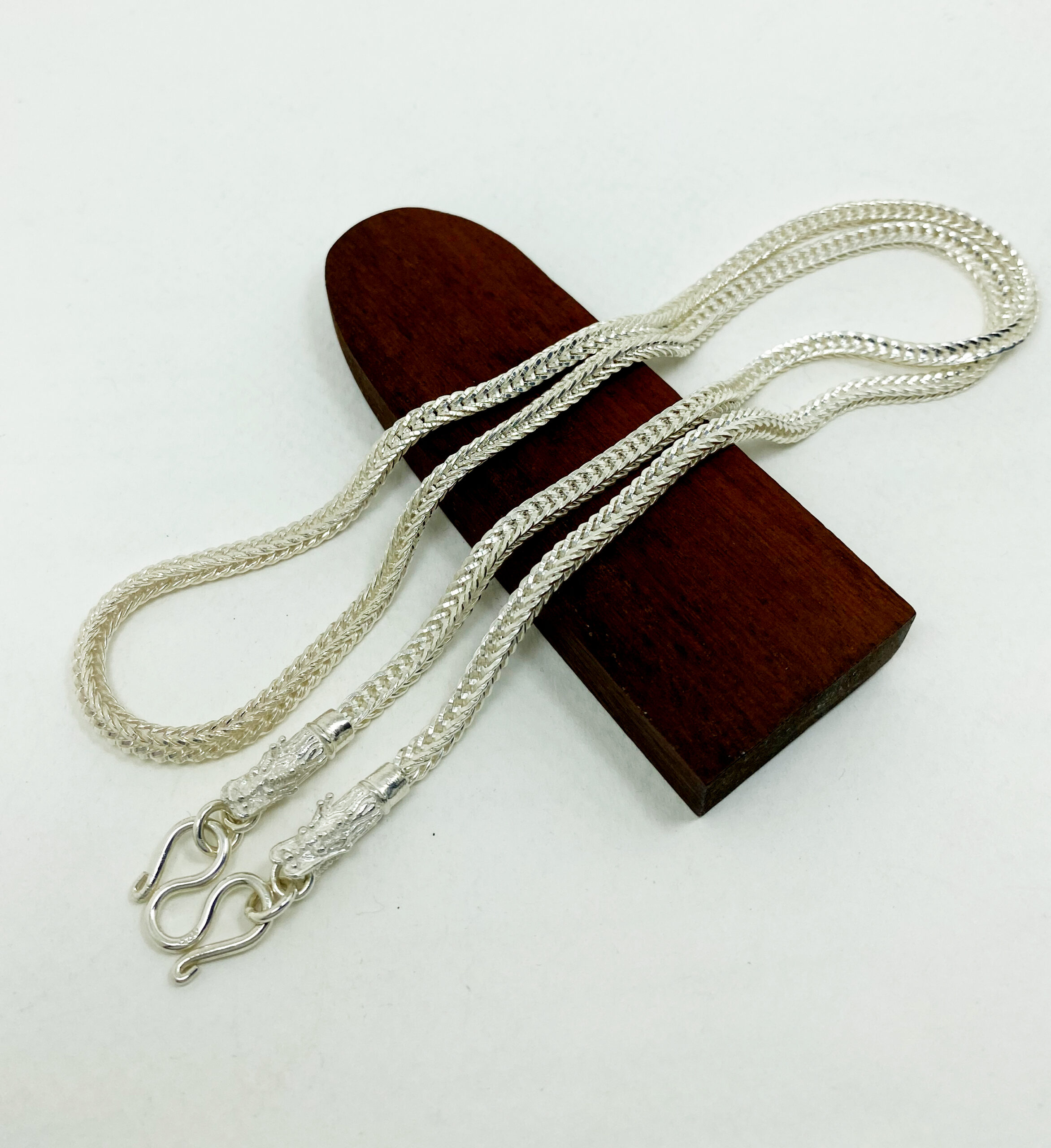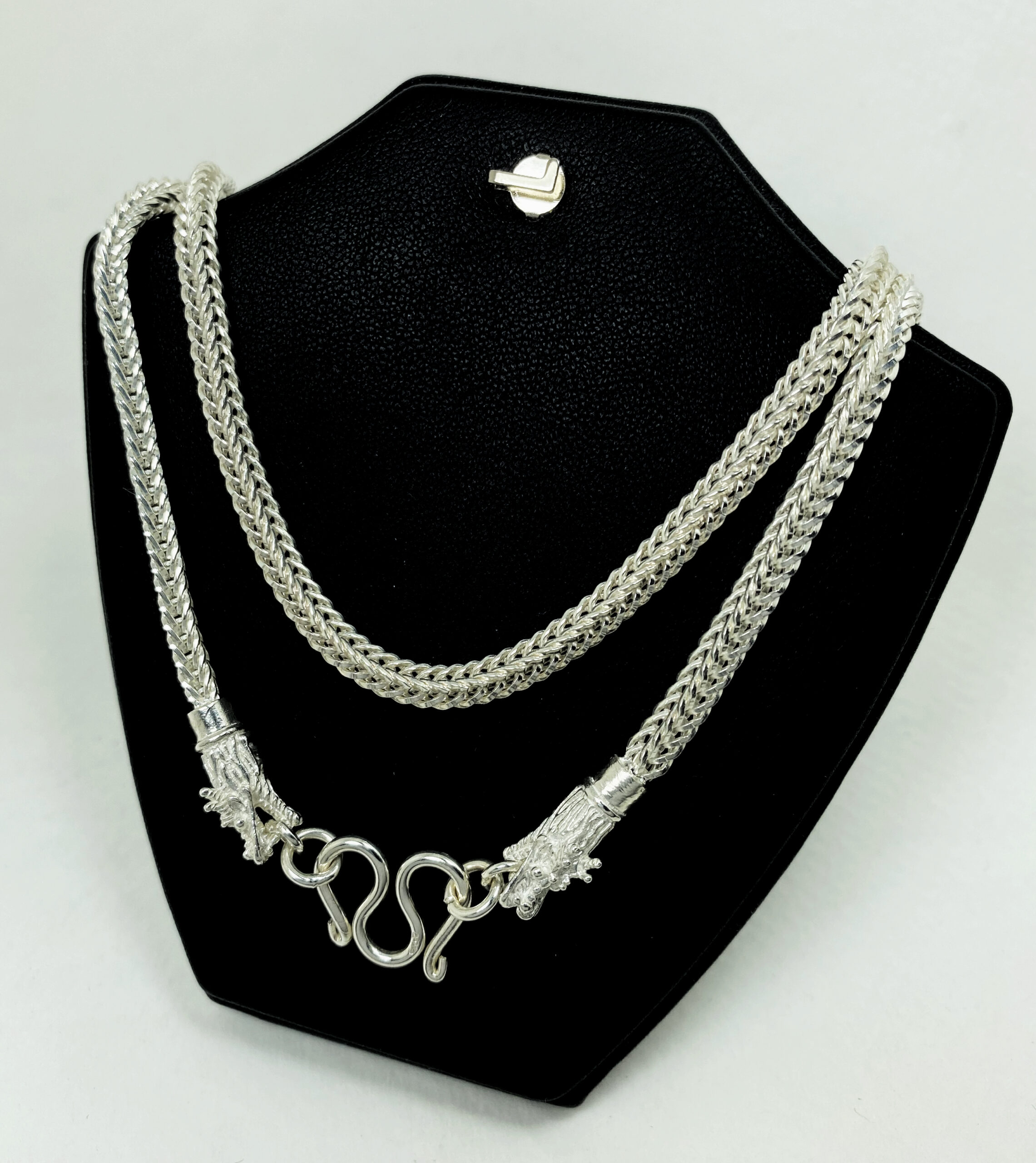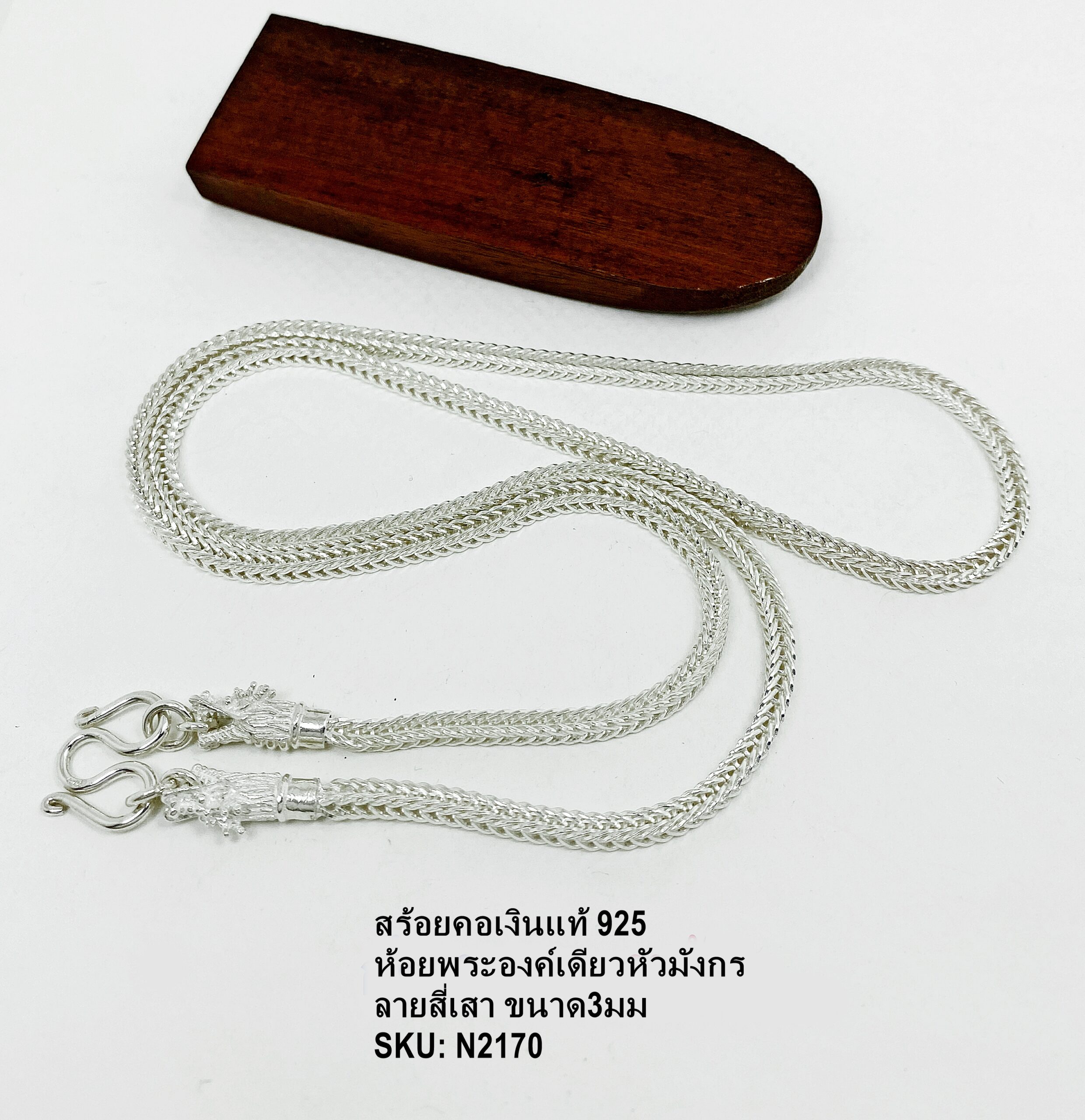 สร้อยห้อยพระองค์เดียว เป็นเงินแท้ 925 ลายสี่เสาหัวมังกร สไตล์อาร์ท