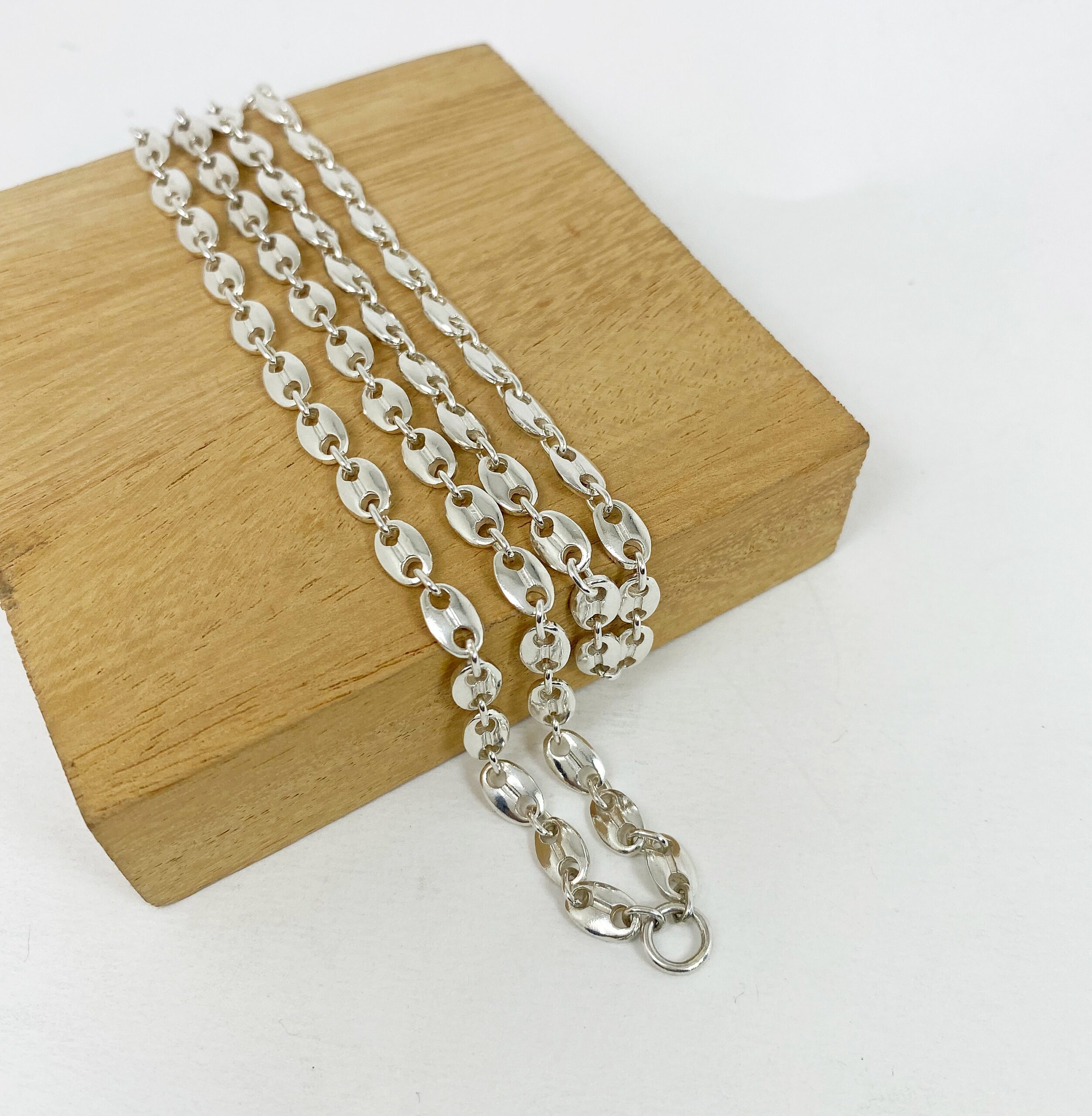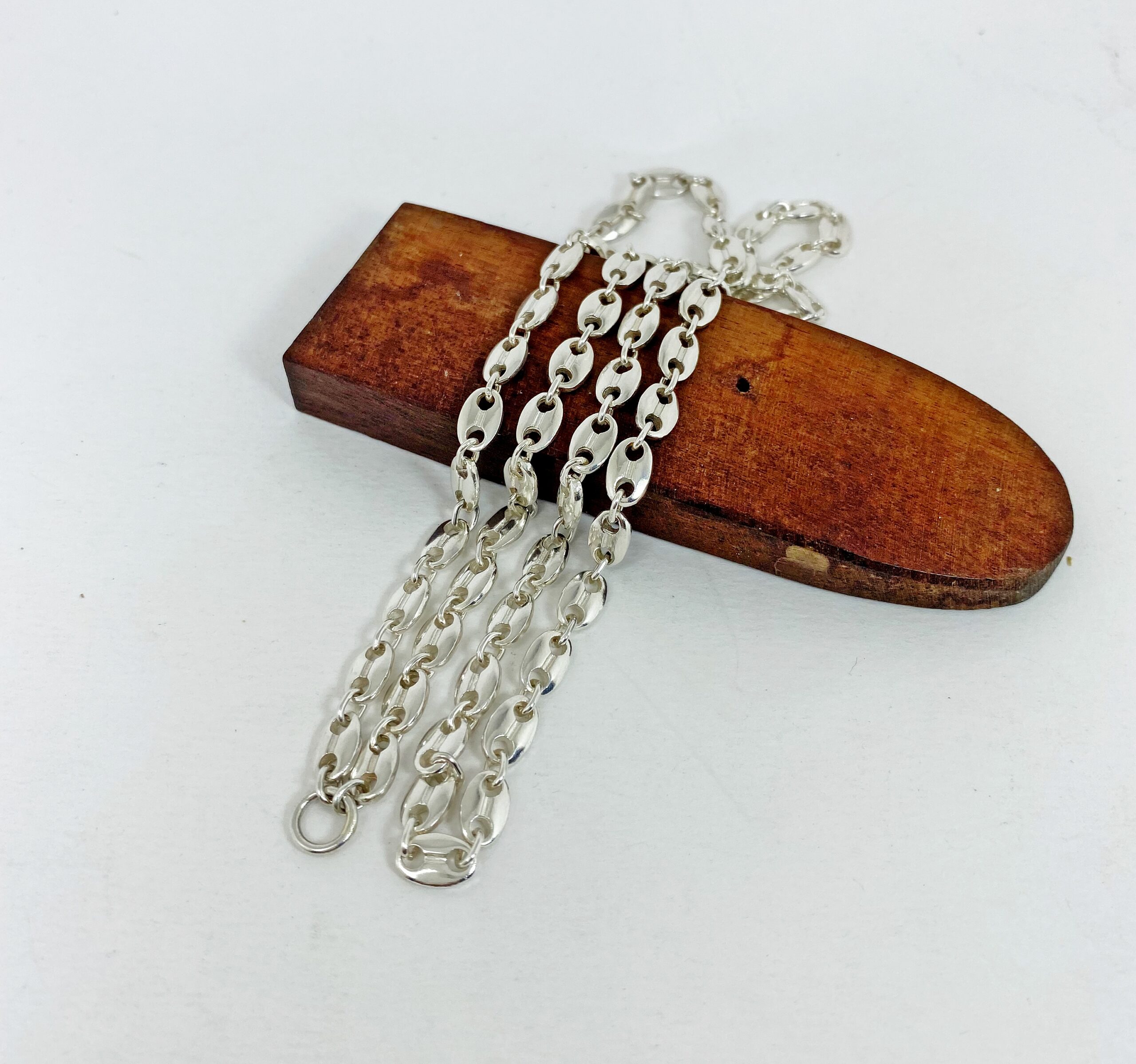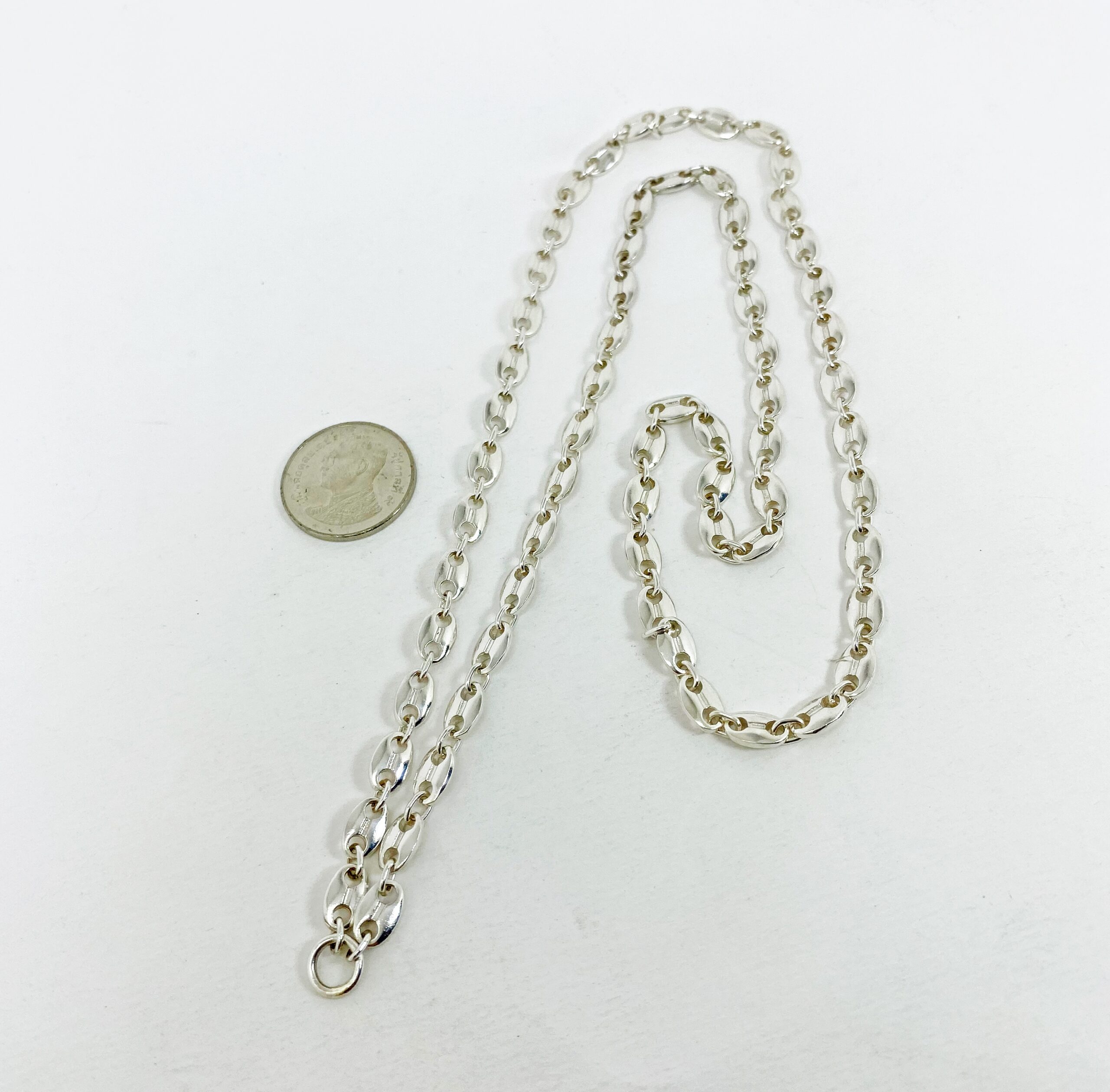 สร้อยเงินแท้925 ลายเมล็ดกาแฟ งานแฮนด์แมด ห่วงหน้าไม่มีตะขอ สวยลงตัว สไตล์โมเดิร์น