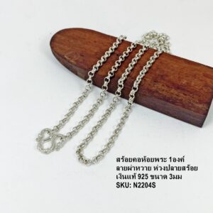 สร้อยคอเงินเส้นเล็ก ลายผ่าหวาย ตะขอM ใส่ได้ทั้งแฟชั่นและห้อยพระ