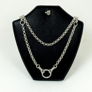 สร้อยคอเงิน ห้อยพระ 8 องค์ รุ่นไม่มีตะขอ ลายเลขแปดสลับ ห่วงหน้าใหญ่เปิดได้